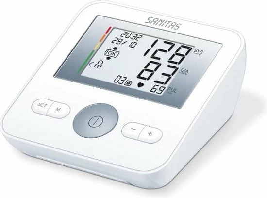De SBM 18 bovenarm bloeddrukmeter van Sanitas is ideaal voor het thuis volledig automatisch en veilig meten van de bloeddruk & hartslag. Deze Sanitas heeft voor 4 gebruikers geheugenplaatsen waarbij de gemiddelde waarden worden bijgehouden. De bediening is erg eenvoudig waardoor de bloeddrukmeter voor iedereen geschikt is. De bijgeleverde manchet is geschikt voor een bovenarmomtrek van 22 tot 42 cm.