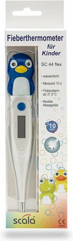 De digitale koortsthermometer SC 44 flex is een snelle maximumthermometer, d.w.z. de hoogste temperatuur wordt na 30 seconden weergegeven. Het einde van de meting wordt aangegeven door een akoestisch signaal.