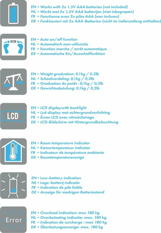 - Meet tot op 0,05 kilogram nauwkeurig je lichaamsgewicht
