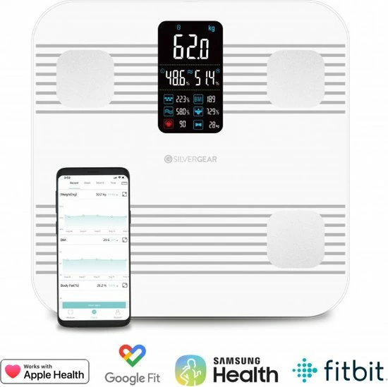 Geavanceerde smart scale met bijhorende app om je gezondheid mee te monitoren. Deze Premium Slimme Weegschaal heeft maar liefst 17 verschillende meetfuncties.