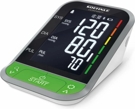 eteen na de meting verzendt Soehnle bovenarm-bloeddrukmeter Systo Monitor Connect 400 je actuele meetwaarden via Bluetooth? naar de Soehnle Connect-app. Zo heb je je persoonlijke meetwaarden altijd bij de hand. Je kunt ze zelfs in grafiekvorm aan je huisarts laten zien. Het is belangrijk dat je altijd op correcte meetresultaten kunt rekenen, daarom waarschuwt de handige ge?ntegreerde bewegingssensor bij verstorende armbewegingen.