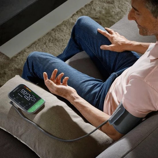 Na iedere meting wordt de systolische bloeddruk, de diastolische bloeddruk en de hartslag aangegeven op het extragrote verlichte lcd-display. Tegelijk attendeert de ritme-herkenning je op een eventuele hartritmestoornis. Om een goede beoordeling van de bloeddruk mogelijk te maken, geeft de Systo Monitor Connect 400 het gemiddelde van de laatste drie metingen aan. Het apparaat heeft 60 geheugenplaatsen per persoon voor twee gebruikers. Als je dagelijks meet, kun je alle waarden van circa twee maanden opslaan, inclusief datum en tijd. In gastmodus kan het apparaat door nog meer personen gebruikt worden, zonder dat jouw meetwaarden overschreven worden. Bij iedere meting worden je resultaten volgens het WHO-systeem (World Health Organisation) ingedeeld op een stoplicht-kleurenschaal: van optimaal of normaal tot te hoge bloeddruk. Dat maakt eenvoudige en eenduidige beoordeling van je bloeddruk mogelijk. De comfortabele verstelbare manchet is geschikt voor bovenarmen met een omvang van 22 tot 42 cm. De pasvormcontrole helpt om verkeerd aanleggen van de manchet te voorkomen. Met energiebesparende automatische uitschakelfunctie. Inclusief batterijen, dus startklaar.
