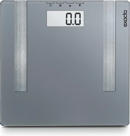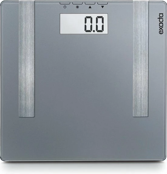 Een behulpzame assistent voor uw dagelijkse fitness is de lichaamsanalyseweegschaal Exacta Premium. Moeiteloos geeft deze uw gewicht weer tot 100 gram nauwkeurig. Ook uw lichaamsvet en het water in uw lichaam zijn goed leesbaar van het extra grote LCD scherm. Deze weegschaal bezit een opslagcapaciteit voor 8 personen, is voorzien van comfortabel veiligheidsglas en kent een draagkracht tot 180 kg. De praktische tap-on functie zorgt voor eenvoudig inschakelen en na gebruik schakelt deze weegschaal automatisch uit.