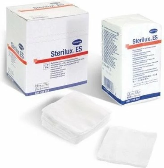 De klassieke gaaskompressen met gevouwen zelfkanten (=ES)