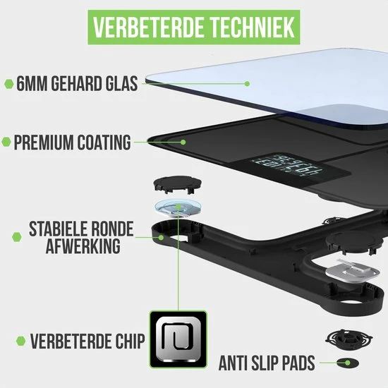 Het grote display zorgt ervoor dat je direct inzicht hebt in de belangrijkste data. Wegen in kilogram of juist liever lbs? Onze weegschaal werkt met meerdere eenheden voor extra duidelijkheid.