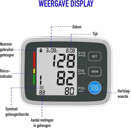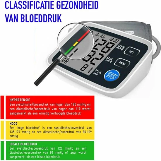- Gemakkelijk afleesbare kleurindicator voor hoge bloeddruk