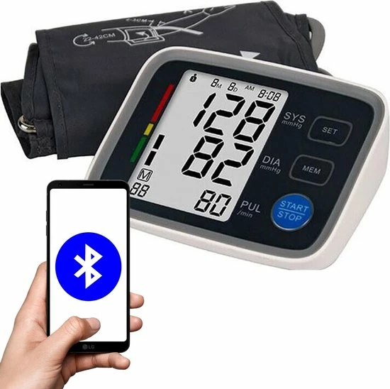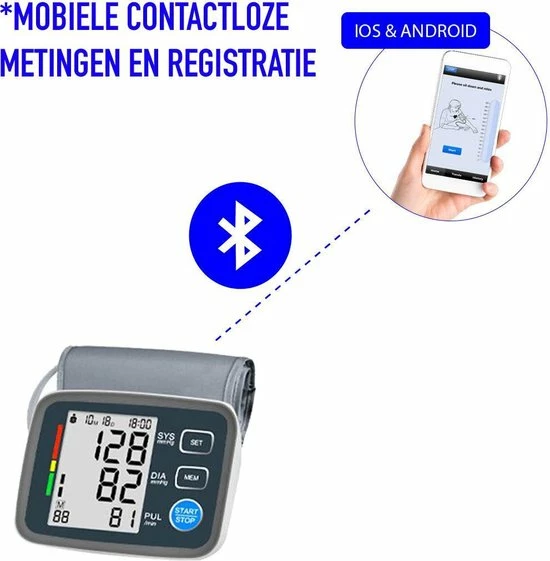 Wilt u nooit meer helemaal naar de huisarts voor all??n een bloeddrukmeting? Waarom zou dat makkelijker moeten? Omdat het belangrijk is dat u gemakkelijk en veilig uw bloeddruk kunt meten. Om al die vervelende ziektes buiten de deur te houden. En ook omdat u nu gemakkelijk met ??n druk op de knop uw hypertensie kan meten. Draadloos via Bluetooth met uw smartphone. De gemeten waarden in de applicatie kunt opslaan en meteen kunt mailen naar de arts! Het is zo makkelijk, dat iedereen u er nu mee kan helpen. Deze hoogwaardige en kwalitatief sterke bloeddrukmeter maakt het namelijk voor iedereen een makkie om zijn of haar bloeddruk te meten. Verzeker uzelf van een gezonde bloeddruk met simpele metingen thuis. Bestel n? snel risicoloos en geniet n? van de gratis verzending!
