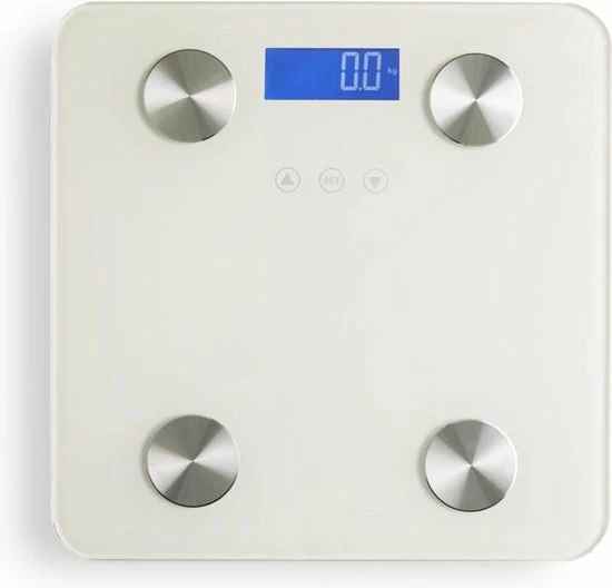 Deze intelligente weegschaal van Technosmart is enorm veelzijdig. Het digitale display laat namelijk naast je gewicht ook je vetpercentage zien! Deze lichaamsweegschaal is uitgerust met een BIA-technologie om het percentage lichaamsvet, vocht, spiermassa en botmassa te meten.