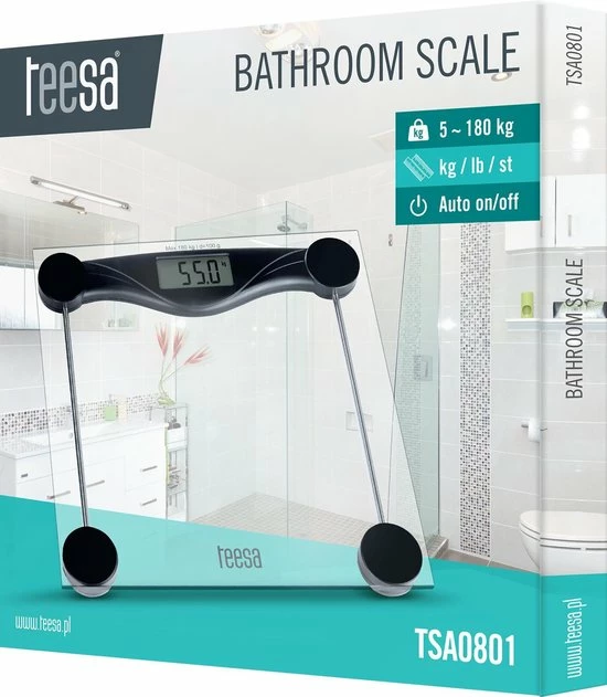 Heeft u uw gewicht onder controle? De TSA0801 digitale glazen personenweegschaal van Teesa met LCD-display vermeldt uw gewicht uiterst nauwkeurig, wanneer u deze op een harde ondervloer plaatst. Het LCD-display toont uw gewicht zeer nauwkeurig in drie eenheden. Door het strakke glazen design valt de TSA0801 personenweegschaal niet op wanneer u deze bijvoorbeeld in uw badkamer of slaapkamer plaatst.