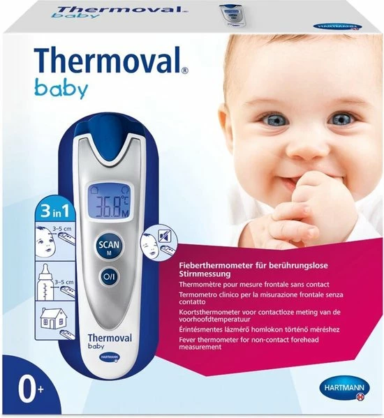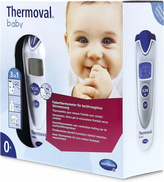 Met de nieuwe Thermoval? baby kunt u eenvoudig en op een comfortabele manier de temperatuur van uw baby meten. Zo krijgt uw baby de slaap die hij nodig heeft om beter te worden. Bovendien heeft de thermometer een aantal handige functies, zoals het meten van de temperatuur van objecten, zoals babyvoeding, melkflesjes, badwater en zelfs de omgevingstemperatuur, bijvoorbeeld in de kamer van uw kind.