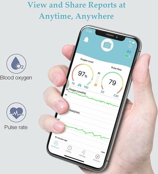 – Realtime ademhaling volgen: SpO2 & PR, beweging