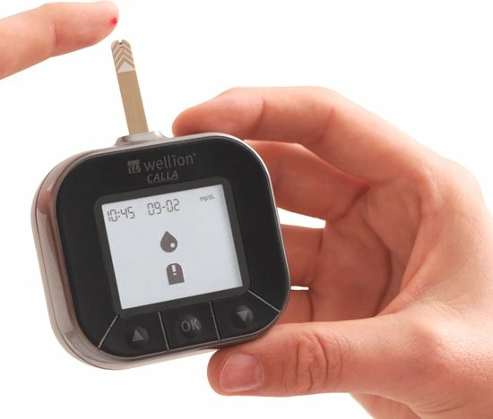 De Wellion Calla Light is een gebruiksvriendelijke glucosemeter met een groot verlicht scherm met grote cijfers, waarmee je al in 6 seconden je glucosewaarden kunt meten. Deze compacte maar robuuste bloedsuikermeter heeft een antislip onderkant die zorgt voor meer grip bij het vasthouden van de meter. Dat maakt deze bloedglucosemeter ideaal voor ouderen. Het geheugen biedt plaats voor 500 metingen en je kan de gemiddelden van 1, 7, 14, 30, 60 of 90 dagen bekijken. Zo krijg je een helder beeld van je bloedsuikerspiegel!