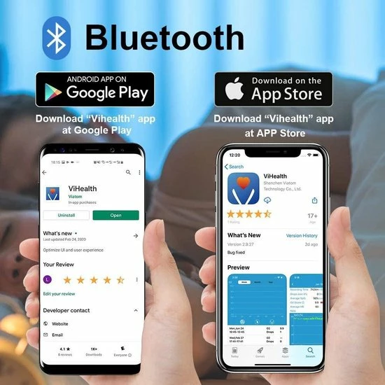 De saturatiemeter komt met een Bluetooth verbinding en maakt het zo mogelijk de gemeten waardes te synchroniseren met je smartphone of tablet. Via Google Play of Apple Store download je gratis de ViHealth-app die het uitlezen, analyseren en bijhouden over langere periode mogelijk maakt. Zo krijg je een nog beter beeld van je algemene gezondheid. Informatie van de ViHealth-app kan ook gemakkelijk gedeeld worden met de Apple Health app.