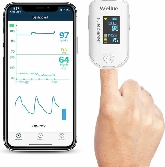 Doormiddel van de Bluetooth verbinding en bijbehorende mobiele app kun je de saturatiemeter verbinden met je smartphone of tablet en zo de waardes over een langere periode bijhouden. Handig voor sporters, long-, astma- en hartpati?nten, maar ook wanneer je in deze tijd van Corona je gezondheid extra goed in de gaten wilt houden.