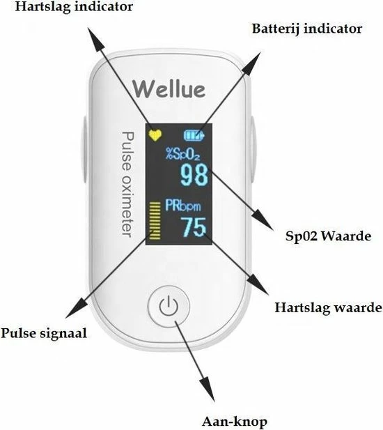 De bediening van de saturatiemeter is gemakkelijk en intu?tief. Wanneer je de saturatiemeter inschakelt doormiddel van de enige bedieningsknop en je vinger invoert in de comfortabele clip zal de meting van je zuurstofwaarde (SpO2) en hartslag (PR) gelijk beginnen.