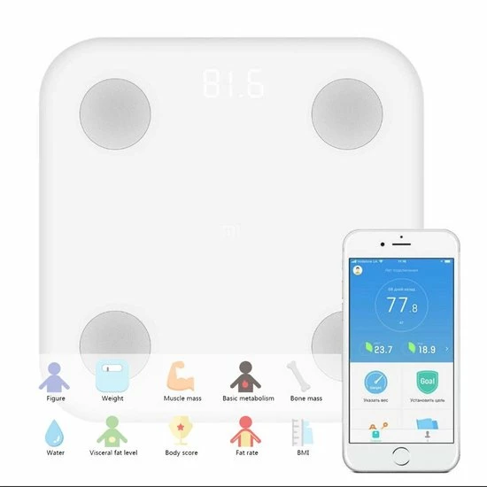 De Xiaomi smart lichaamsweegschaal werkt met een BIA technology. Hierdoor kan het lichaamsgewicht nauwkeurig en snel gemeten worden. Naast het gewicht meet de weegschaal nog 9 andere dingen. Zo wordt het gewicht, botmassa, vochtgehalte, spiermassa, vetpercentage, basismetabolisme, visceraal vet, BMI onder andere gemeten. Alle data wordt duidelijk op het display getoond. Door de bluetooth functie worden de resultaten gemakkelijk geupload op je mobiel. Hierdoor kan je alles goed bijhouden.