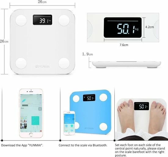 Xiaomi Yunmai Mini Smart weegschaal meet jouw lichaam van top tot teen en houdt deze statistieken van 16 verschillende mensen moeiteloos bij in de Yunmai app met draadloze Bluetooth-technologie. Elke gebruiker wordt aan de hand van de metingen herkent, en jouw resultaten worden zonder je profiel te kiezen automatisch bijgewerkt. Met Yunmai weet je precies hoe je jouw sterke en zwakke punten moet aanpakken. Het bekijken van jouw metingen is eenvoudig terug te zien in de Yunmai App. Gezondheidstrends kunnen in grafieken worden weergegeven en over dagen, weken, maanden en jaren worden bekeken. Bij gebruik van de Yunmai Smart Rope (slimme springtouw) zie je ook deze gegevens terug in de App, met nog meer controlle met betere resultaten als gevolg!