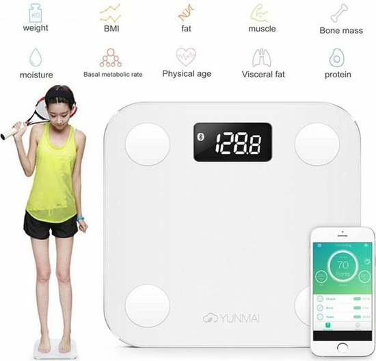Behalve jouw gewicht meet deze slimme weegschaal ook 9 andere lichaamsstatistieken, namelijk:
